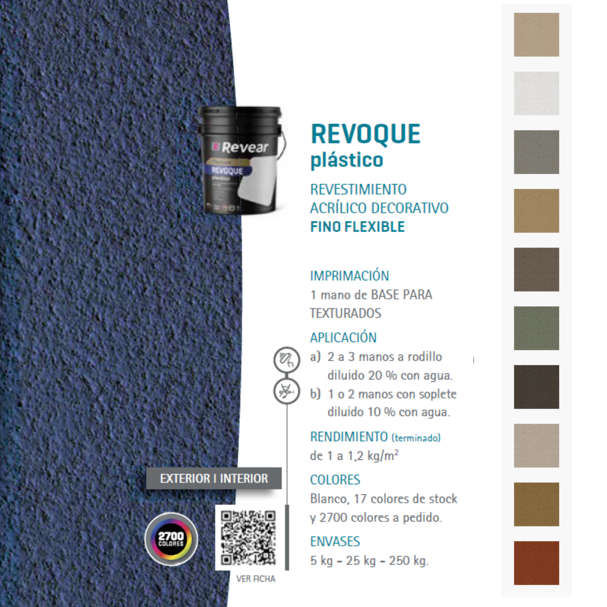 Es un revestimiento acrílico decorativo de textura fina y gran flexibilidad, resistente a todo los climas. No cuartea ni fisura y tampoco se despega ni se descascara. En obra nueva, mantenimiento o refacción, brinda la máxima protección decorativa para paredes exteriores.